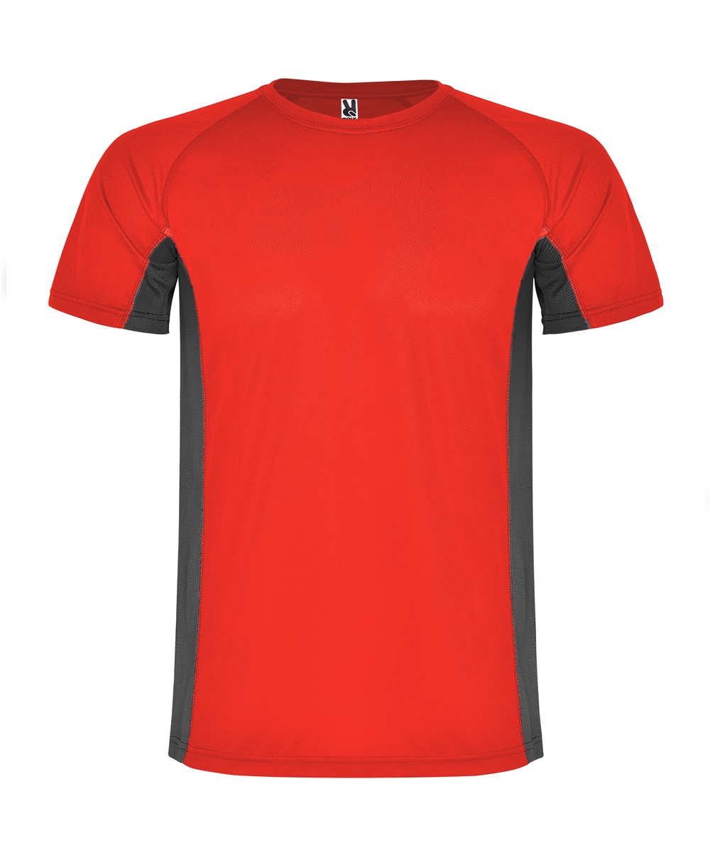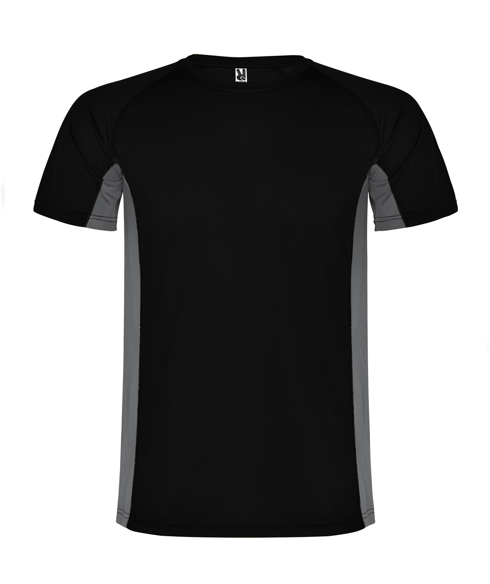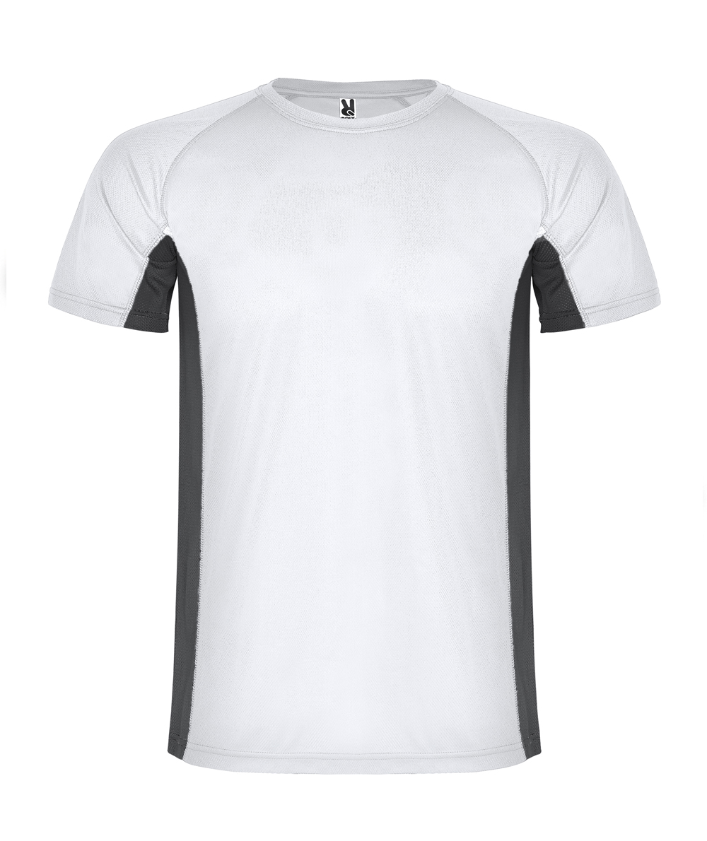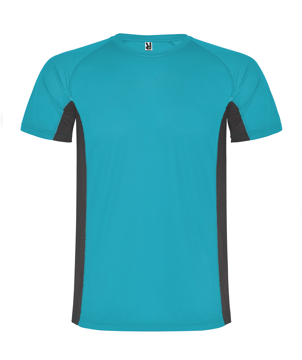 • La maglietta manichge corte Shangai, abbina due tessuti in poliestere: uno con tessuto a nido d'ape e l'altro microforato