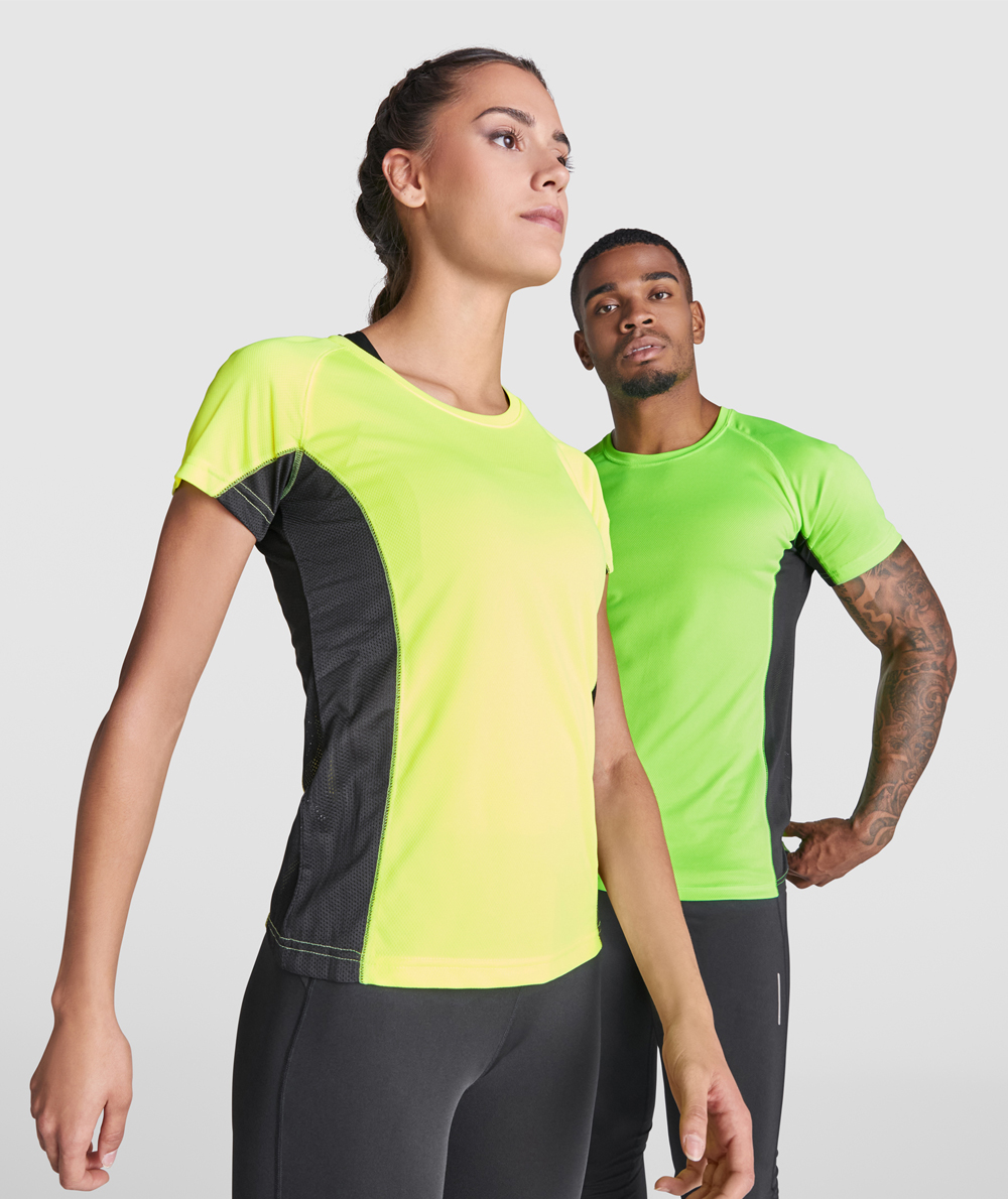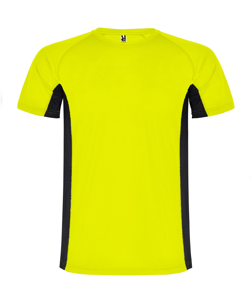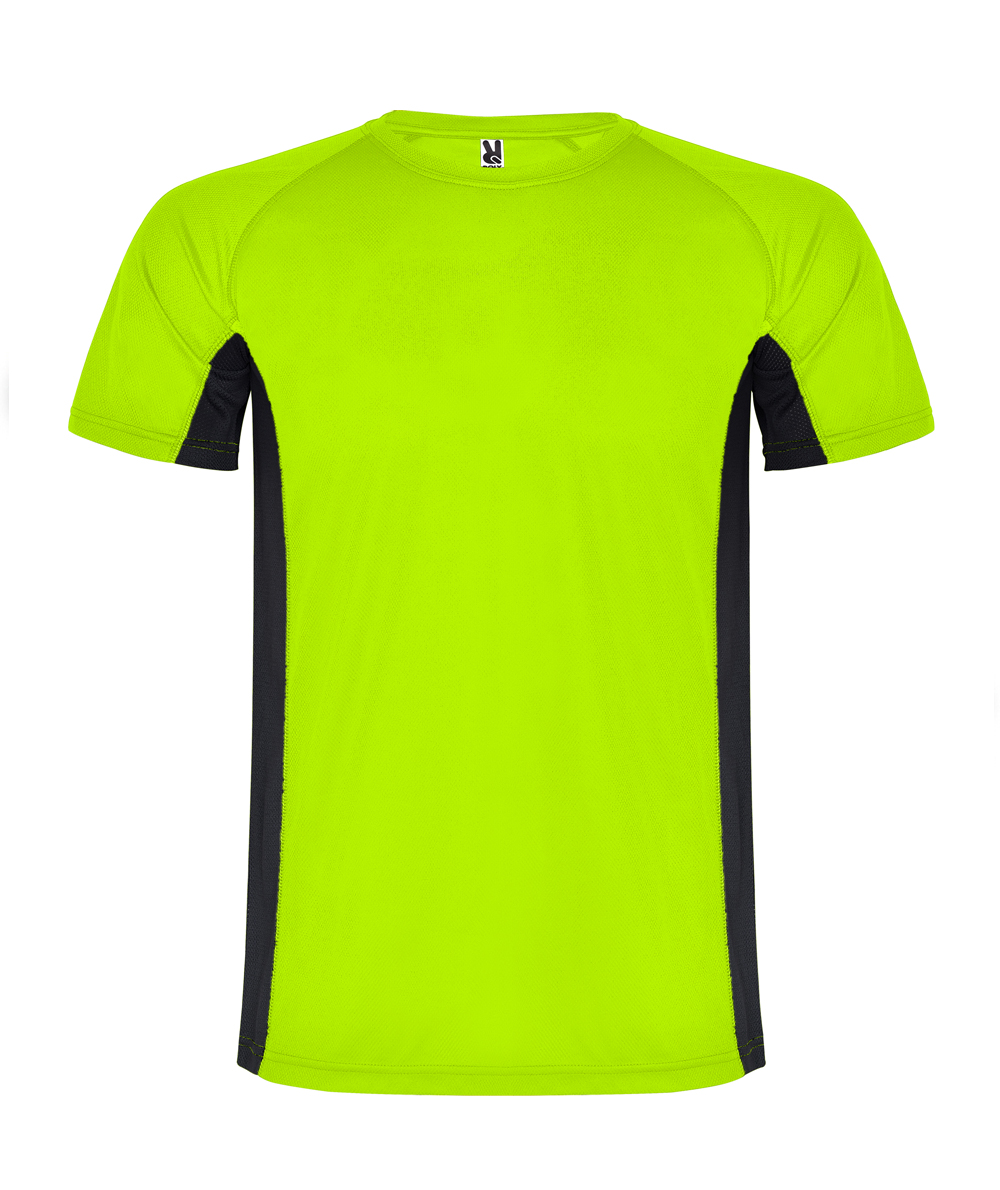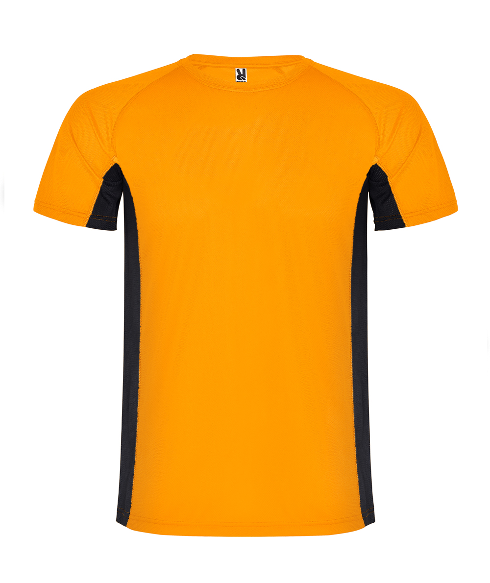 • La maglietta manichge corte Shangai, abbina due tessuti in poliestere: uno con tessuto a nido d'ape e l'altro microforato