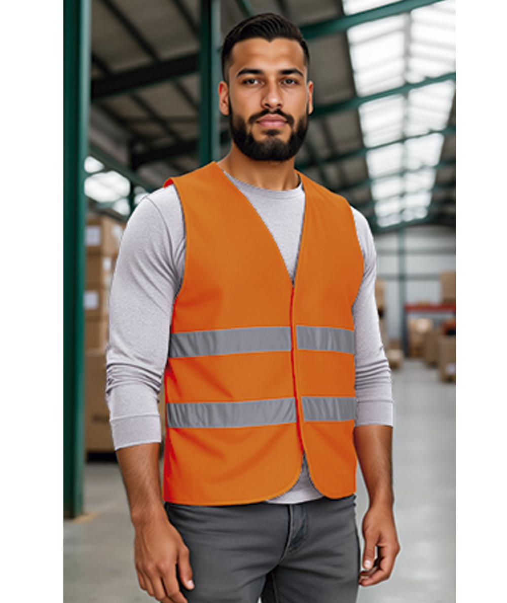 • Due bande catarifrangenti cuciti su busto e schiena per maggiore sicurezza