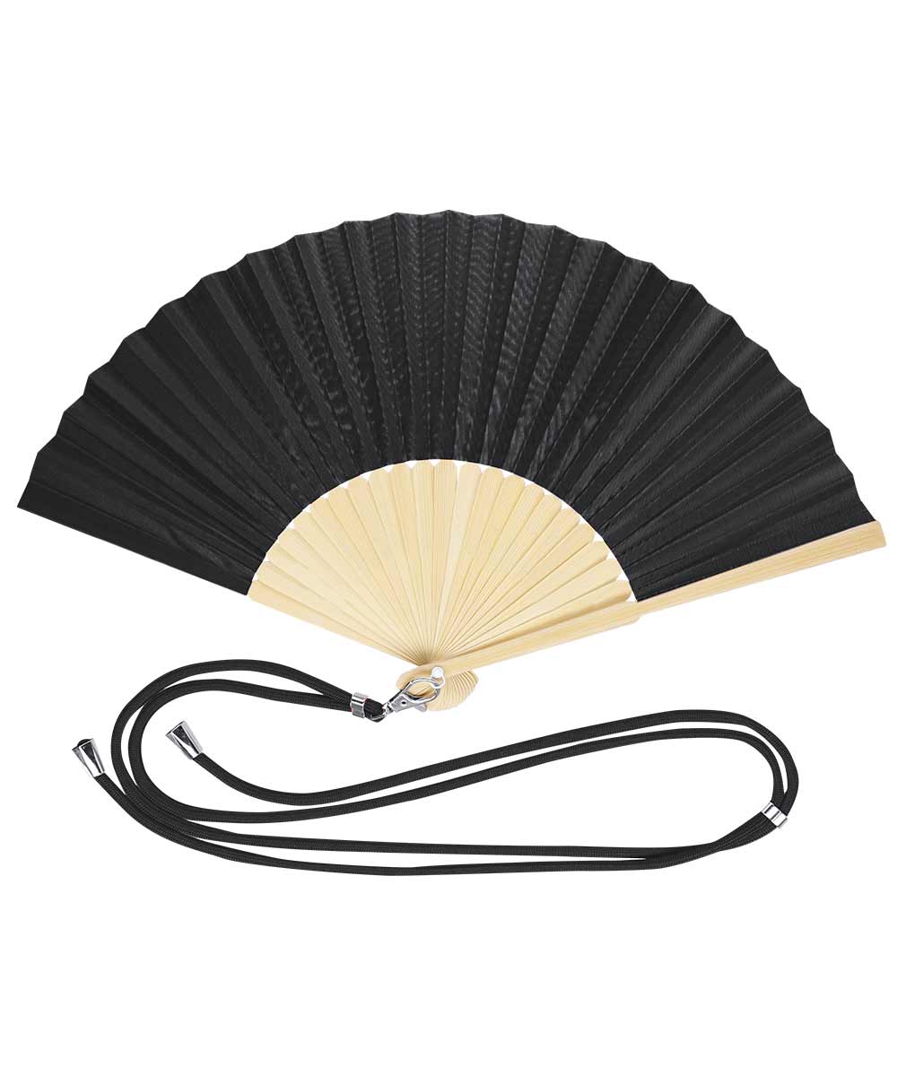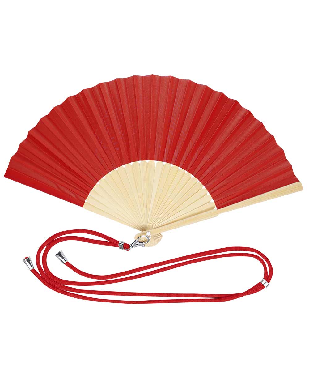 • ventaglio realizzato con tessuto di poliestere resistente e bacchette di bambù flessibili