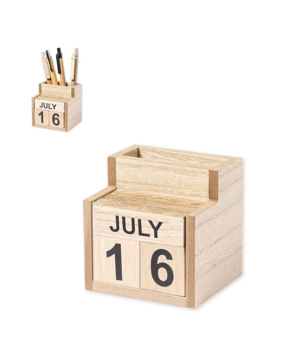 • Portapenne calendario perpetuo della linea natura: non è più necessario cambiare il calendario ogni anno, con il vantaggio che questo comporta per l'ambiente